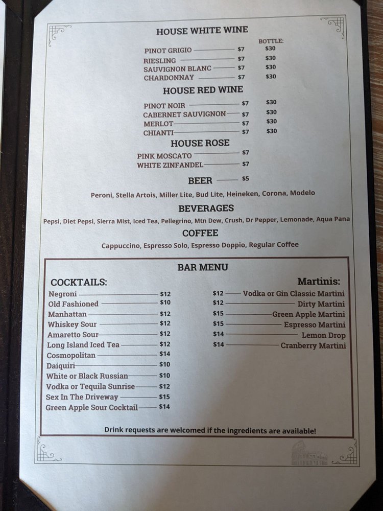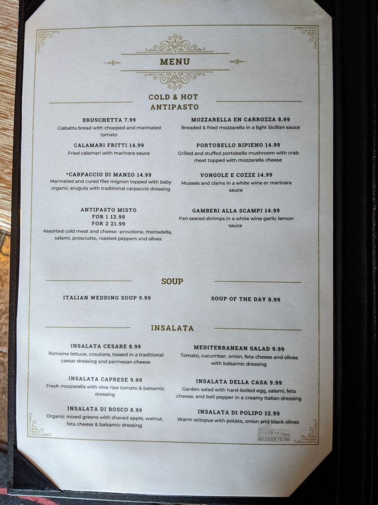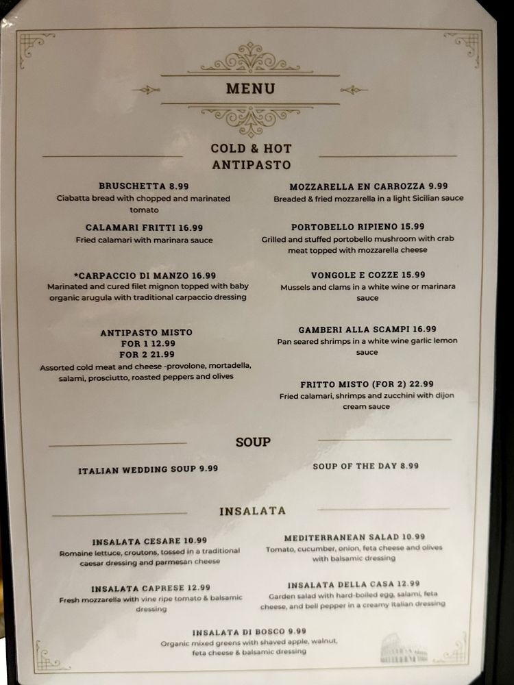 The menu boasts a mouthwatering selection, featuring delights like Bruschetta Ciabatta, Carpaccio di Manzo, and Gamberi Alla Scampi. Vegetarian options, such as the Portobello Ripieno, highlight the restaurant’s commitment to fresh ingredients. Don't miss the creamy Cannoli and homemade desserts to round off your meal.